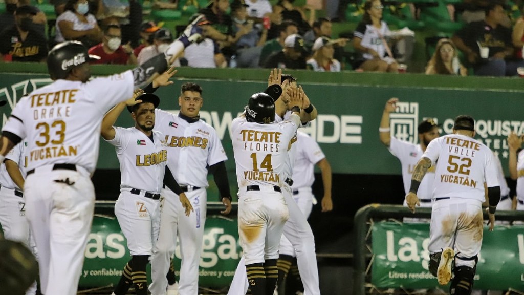 MÉRIDA Yucatán._ Los Leones de Yucatán vencieron 5-3 a los Diablos Rojos del México ponerse a un paso del obtener el Bicampeonato de la Zona Sur de la Liga Mexicana de Beisbol.