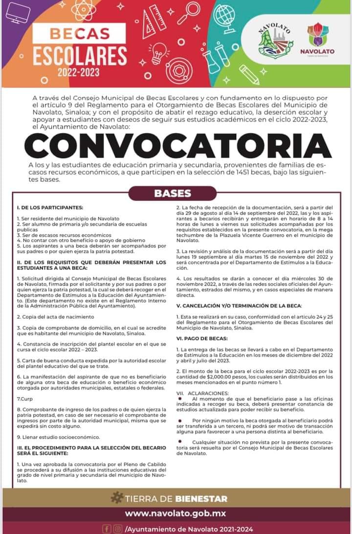 Con el objetivo de abatir el rezago educativo y motivar a estudiantes que necesitan de apoyo económico para continuar sus estudios, el Consejo Municipal de Becas abrió hoy la convocatoria para que alumnos de escuelas primarias y secundarias públicas puedan participar para obtener una beca escolar para el ciclo 2022-2023.