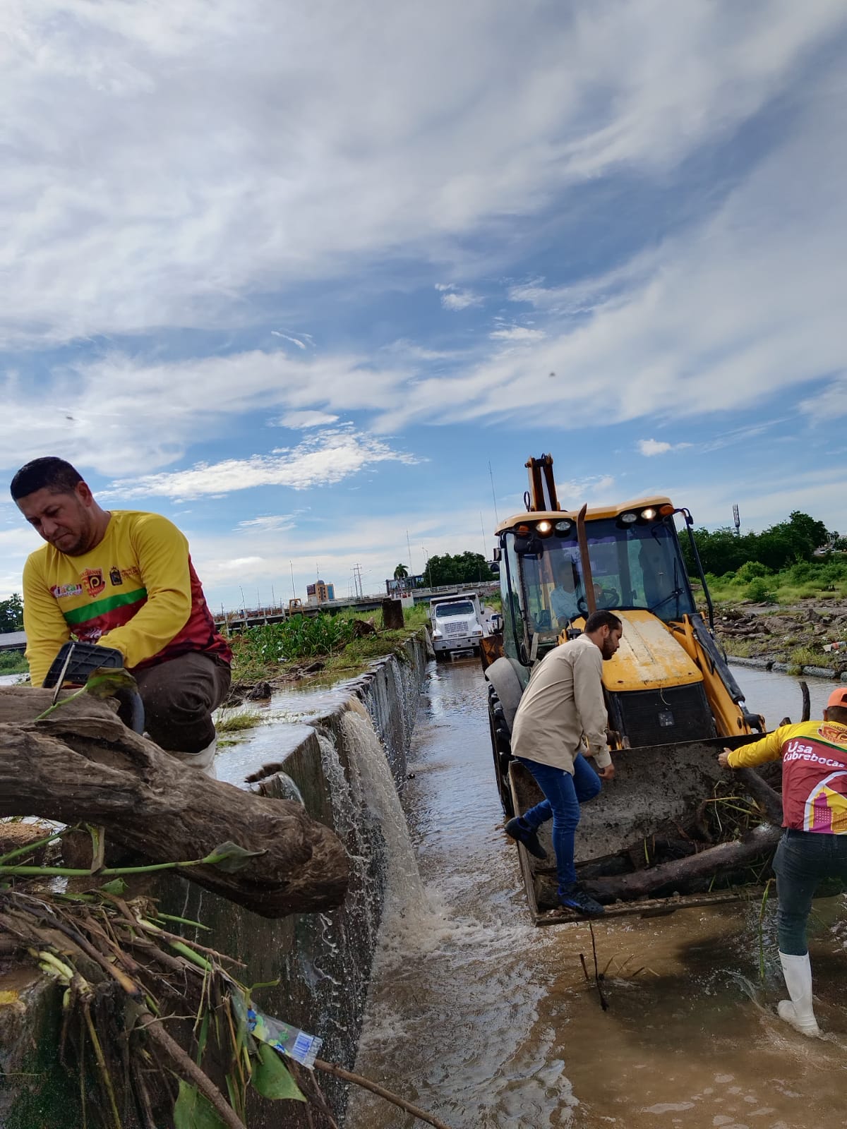 A través de una cuadrilla equipada con maquinaria pesada, entre ellas un camión de volteo y una retroexcavadora pertenecientes a la Secretaría de Obras y Servicios Públicos, se logró el retiro de troncos, ramas, llantas y basura acumulada, que fue arrastrada por las precipitaciones.