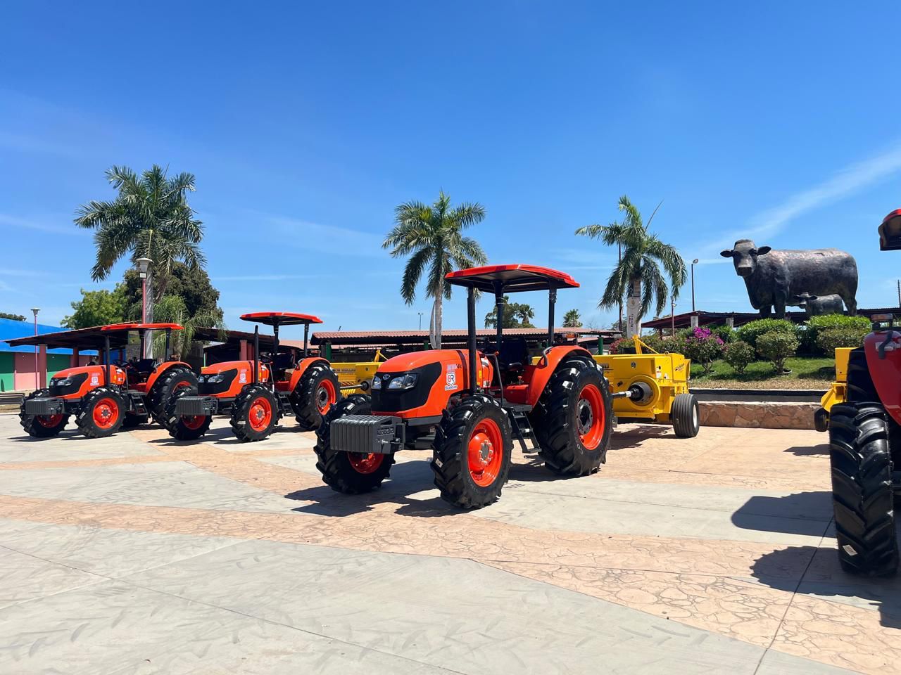 En total fueron cinco equipos completos para labores agrícolas, integrados por tractores, empacadoras, desmenuzadoras, equipos de rastreo, así como remolques tipo cama baja. Estos equipos están destinados principalmente a la elaboración de pacas, fortaleciendo la capacidad operativa en el sector.